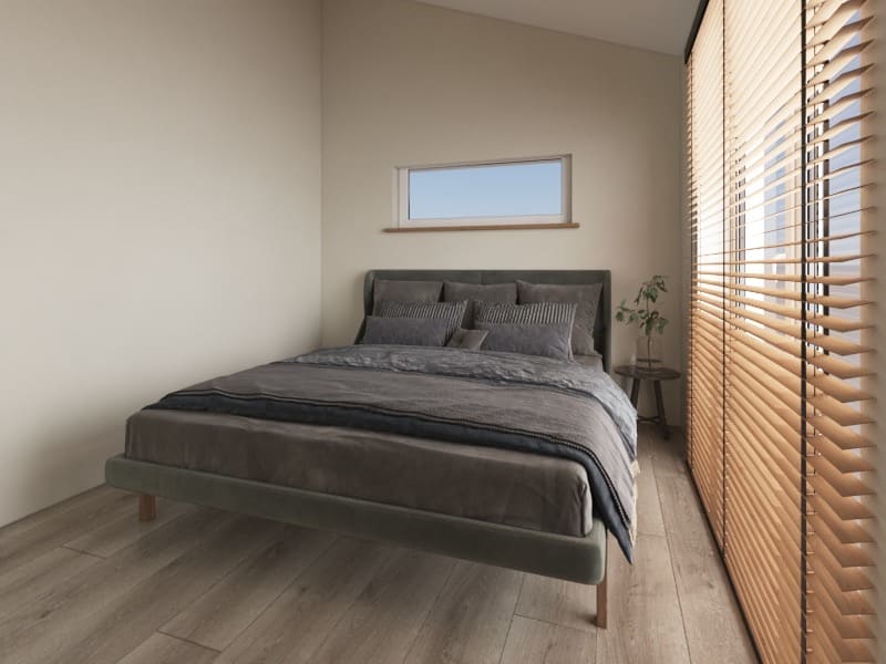 Í aðalsvefnherbergi er vandaður fataskápar, 160x200 rúm og náttborð. Í gestaherbergi eru tvö 90x200 rúm og náttborð. Í barnaherbergi eru kojur og vandaður fataskápur.