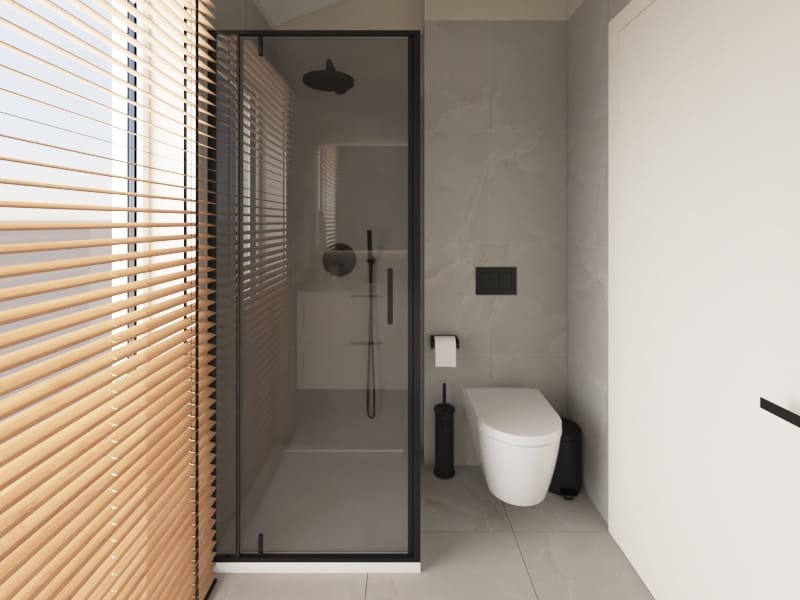 Veggir á baðherbergi klæddir með fibo plötum, 2204 Cracked Cement.